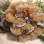 Dunque, dopo il magico momento del ritrovamento sulla spiaggia, inizia un lungo lavoro: una quotidiana serie di lavaggi e spremiture per eliminare la sabbia, le incrostazioni e il dannato polistirolo. La cosa può andare avanti per settimane fino a quando l’acqua del risciacquo è pulita. Poi procedo ad un bagno in acqua tiepida con un po’ di acido muriatico ( per sciogliere i residui calcarei) ed infine una giornata immerse in un comune prodotto da bucato sbiancante all’ossigeno. Di nuovo qualche giorno di risciacqui ed infine una buona asciugatura al sole rigirandole spesso. Solo allora è pronto un piccolo regalo, ideale per la pelle delicata di Amanno e di Paolo: i nuovi nipotini nati quest’estate!